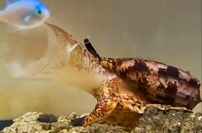 Кита этим гарпуном, конечно, не добыть, но вот выловить рыбку большую и маленькую — вполне реально. Свою жертву хищница находит осфрадием — особым органом чувств, на подобие нашего носа. Как только брюхоногий «унюхал» добычу, чертила за доли секунды насаживает зазевавшуюся жертву на своё орудие и вводит яд. Ещё пара мгновений и парализованная рыбка уже засасывается необъятным ртом в бездонный желудок.