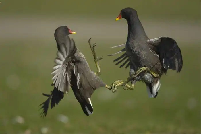 Вообще, камышницы птицы не конфликтные, но если им придётся защищать гнездо, они будут стоять до последнего.