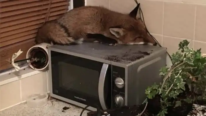 14. «Однажды я зашёл на кухню и нашел лису, которая решила пробраться в дом и вздремнуть на микроволновке»