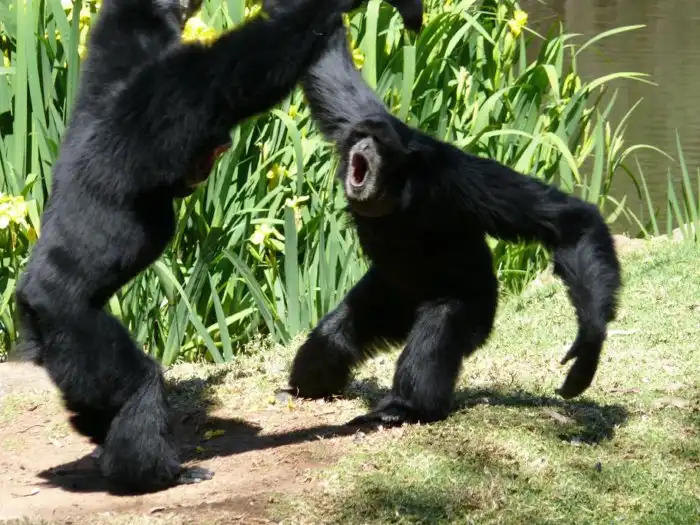 Сиаманги очень ревностно защищают свою территорию от чужаков. Чтобы не возникало открытых столкновений, обезьяны поют "пограничные" песни.