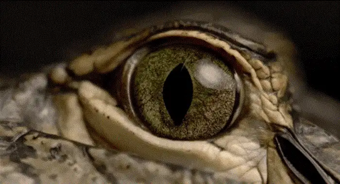 Чтобы смачивать глаза и при этом всё время быть начеку, у крокодила "моргание" происходит вот так.