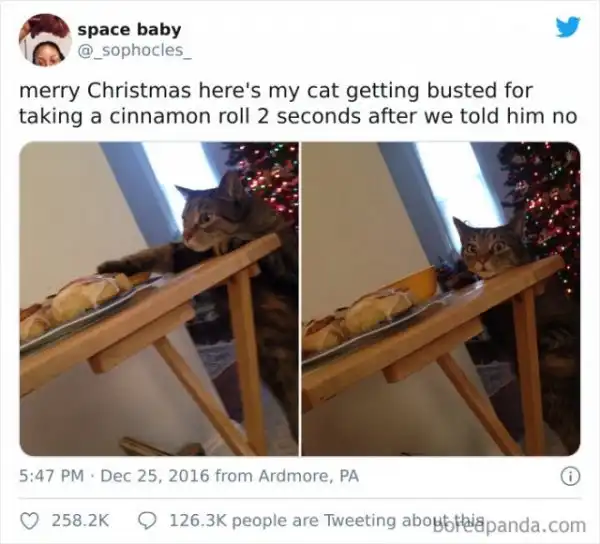 Домашние животные частенько пытаются украсть угощения. И относится это не только к котам, но и не к самым воспитанным собакам. Попадаясь "на горячем", они выглядят очень забавно.