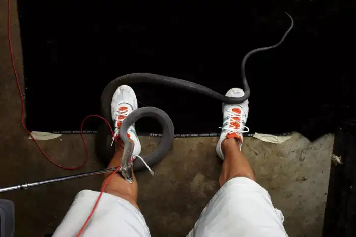 Впрочем, чёрные мамбы иногда сами наведываются к людям "в гости". Для того чтобы отлавливать таких опасных змей, вызывают специалиста-герпетолога.