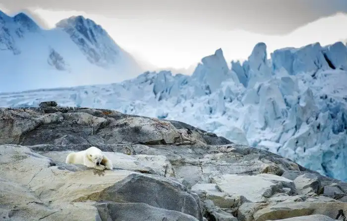 Полярные медведи полагаются на морской лед Северного Ледовитого океана, чтобы охотиться на тюленей. Исчезновение льда заставляет животных передвигаться на большие расстояния или на берег, чтобы найти пропитание для себя и своих детенышей.