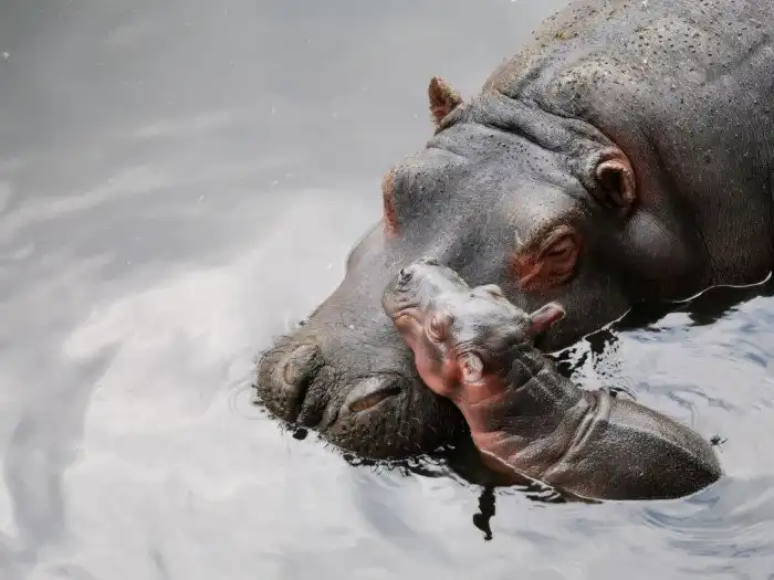 Детеныш бегемота со своей мамой в зоопарке Саканго в Калимайе, Мексика. (Фото Zacango Zoo-State of Mexico):