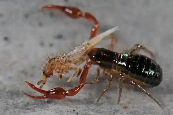 А что касается жала? Это именно то, чем так гордятся их пустынные воинственные братья... И это именно то, что лжескорпионам нужно как собаке пятая нога. Для того чтобы разобрать свою еду на запчасти, им вполне хватает и обычных клешней.