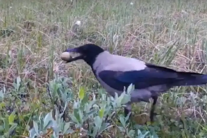 Ворона разоряет гнёзда певчих птиц
