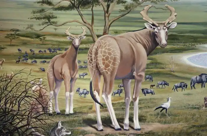 Сиватерий выглядит так, будто застрял где-то посередине между антилопой и жирафом. Вызывающие уважение 3 метра в холке, длинные ноги и не менее длинный язык как бы говорят учёным: «Верьте нам, я жираф!».