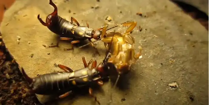 Но самое страшное в уховёртке не крылья, а отростки, торчащие из её пятой точки. Они называются церками и работают, как настоящее орудие пыток! От клопов до пчёл — своими щипцами уховёртка может захватить любую соразмерную букашку. Вообще, это создание жрёт всё: от членистоногих собратьев до ягод, фруктов и опавшей листвы.