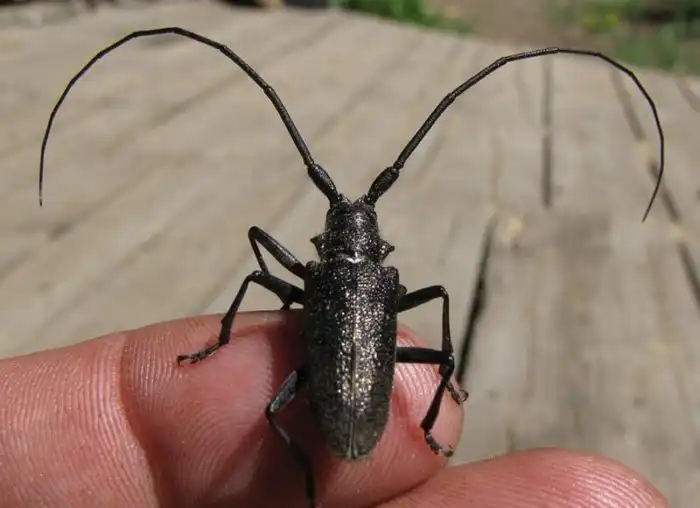 Волосогрызками, или жуками-стригунами, называют больших жуков-усачей, чаще всего сосновых дровосеков. Не, ну а что? Они крупные (до 3 сантиметров), страшные (только гляньте на их усы, которые в 2,5 раза больше тела) и встречаются повсеместно по всей России-матушке: и в городских рощах, и в горных лесах, и в суровой северной тайге.