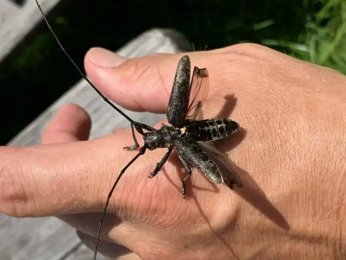 Максимум — могут коготками что-нибудь нечаянно поцарапать или порвать. Но это не со зла: жуки просто привыкли к экстремальному древесному альпинизму и не вдупляют, что нежная одежда такой цепкой хватки не терпит. Ну, и за палец больно цапнут, если вы будете больно ему докучать.