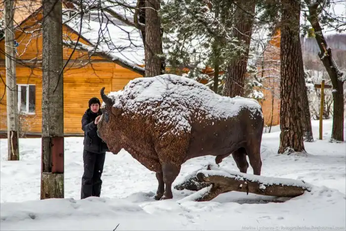Кстати, хорошая новость для жителей Санкт-Петербурга — подивиться на зубробизона можно в Токсово, Ново-Кавголовский лесопарк.