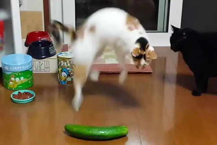 Многие наверняка натыкались на вирусное видео: котам подкладывают огурцы, те оборачиваются и подпрыгивают, шарахаются или ещё как-то бурно реагируют. Причём такие ролики сделали многие владельцы котов. То есть эта реакция у животных довольно распространённая. Но с чем это связано?