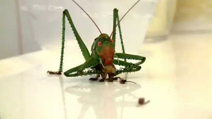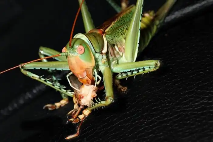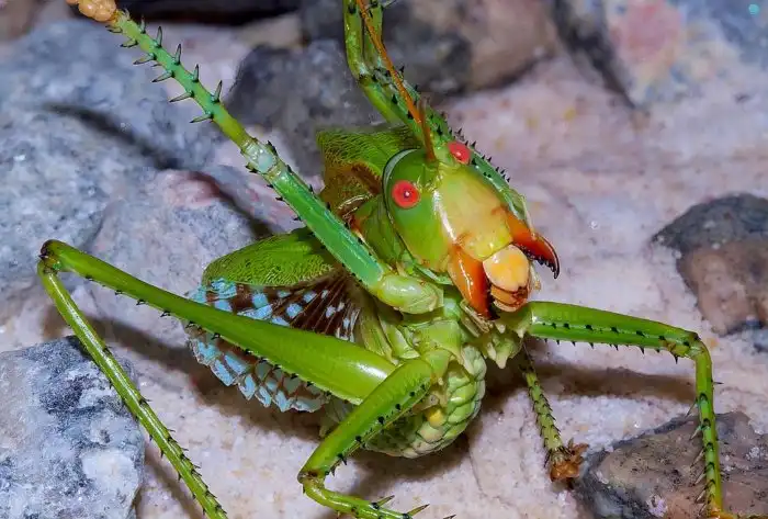 Вот это поворот, да? А между тем, история эта совершенно правдива. Благо, что речь идёт не об отечественных кузнецах, а про американское отродье, которому палец в рот не клади: сожрёт и не подавится. Название у этого нечто вполне себе соответствующее: дьявольский красноглазый кузнечик — звучит солидно, не находите? Да и видок у него такой, что сразу понятно: перед нами — не просто кузнечик, а адский потрошитель, который удрал из террариума самого сатаны.