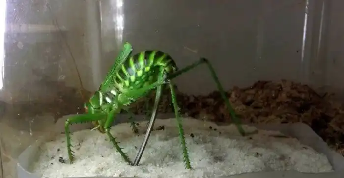 Штука, которая похожа на гигантский шип из попы, на самом деле является яйцекладом. Через него самка зарывает в землю своих деточек.