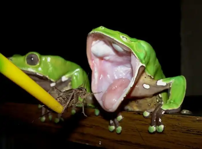 Во-первых, многие лягушки держат в ужасе окрестную живность, пожирая всё, что не успело спрятаться — рыбок, насекомых, мышей, змей, птиц и других лягушек. А во-вторых, подобное нагибалово миру животных им позволяют устроить прекрасно вооружённые зубами челюсти!