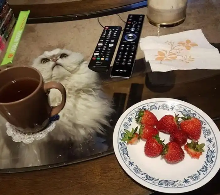 «Нашего кота Клесса очень смутил новый стеклянный стол»