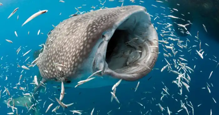 Ничто не может встать на пути между китовой акулы и жатвой мелких рыбок!