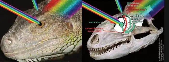 Нет, РенТВ и заговорам про рептилоидов не бывать на нашем канале! На деле всё куда проще: теменной глаз (так его прозвали биологи) — это специфический орган зрения, расположенный в отверстии черепа под специальной полупрозрачной чешуйкой.