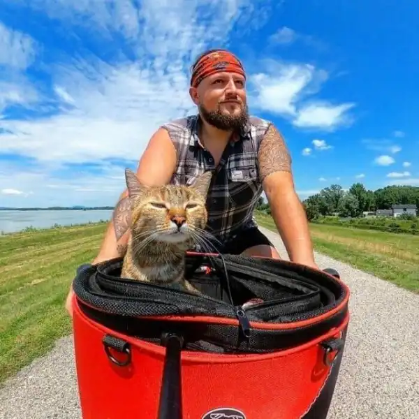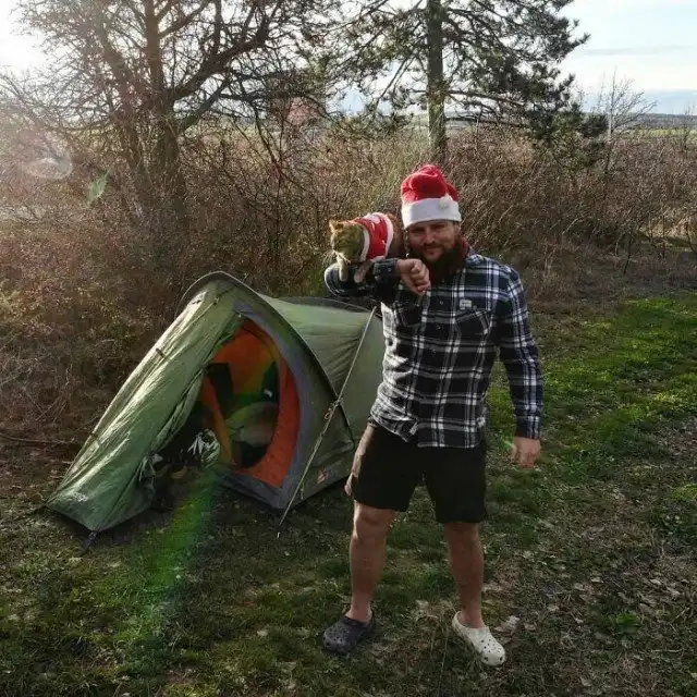 По словам Дина, однажды он переходил границу с Черногорией и увидел бездомную кошку. Мужчине назвал ее Налой и решил продолжить свое путешествие уже вместе с ней.
