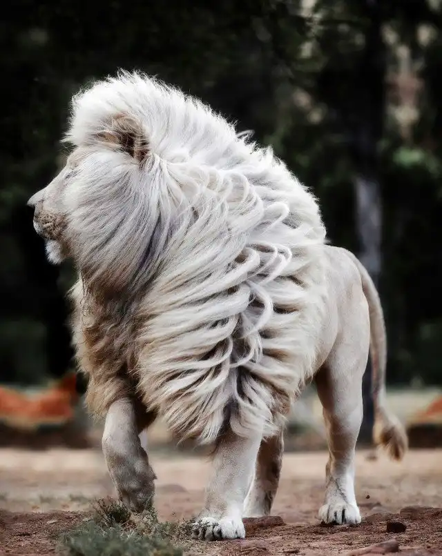 Белый лев по имени Мойя явно гордится своей внешностью и прической.