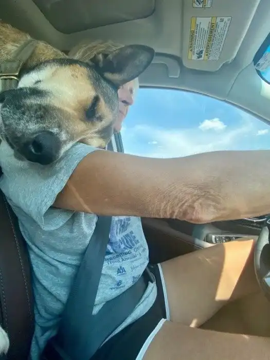 Это Джексон, ему не нравится сидеть одному на заднем сиденье