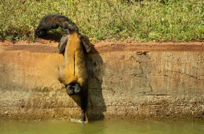 А для того, чтобы не мочить свою шикарную броду, саки набирают воду в ладошки. Поэтому местные прозвали их "обезьянами-пьяницами".