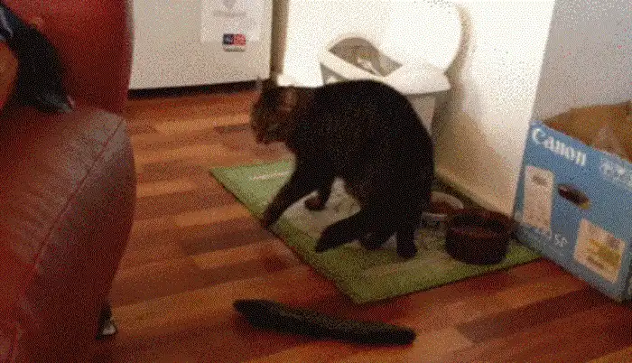 Но само по себе это правило ни в жизнь не вызовет столь паническую реакцию. Если я покажу котику незнакомый овощ, он лишь подозрительно принюхается, а то и вовсе начнёт с удовольствием кушать автотрофа. Но если мы добавим фактор внезапности, то получится поистине взрывоопасная смесь.
