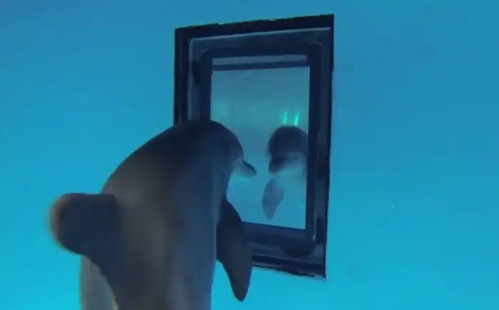 Впрочем, есть лучики света в зверином царстве глупости. Дельфины, слоны, некоторые врановые и примерно 75% шимпанзе осознают, что видят в отполированной поверхности свои собственные физиономии. Учёные выяснили это с помощью зеркального теста.