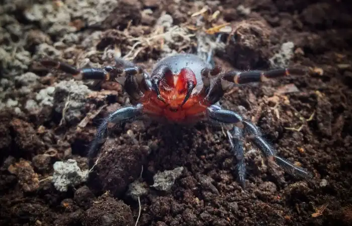 Жуткая тварь совсем невелика — всего 1-3 сантиметра длиной. Но несмотря на маленькость, видок паука более чем брутальный: иссини-чёрное тельце украшают красные или чёрные жвала.