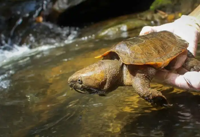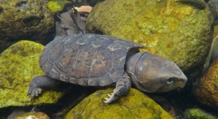 Большеголовые черепахи не очень хорошие пловцы — у них даже нет перепонок между пальцами. Под водой они просто ходят по дну, цепляясь когтями за камни.