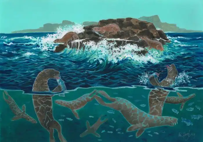 Первые водные млекопитающие были отпетыми оторвами. Как и в Америку 19 века, в море отправлялись те, кто стоял на грани гибели, кому было уже нечего терять и кто готов был рискнуть всем ради успеха. Только вот переехать за океан и в океан — немного разные вещи. Вместо того чтобы просто купить билет на самолёт с серебристым крылом, эналиаркту пришлось потратить миллионы лет на приспособление к новой среде. Ведь сам зверёк, будучи обычной древней куницей, с водой никак связан не был.