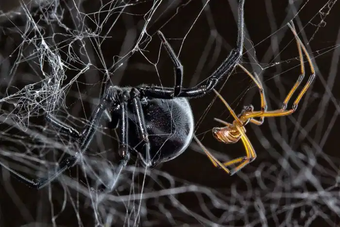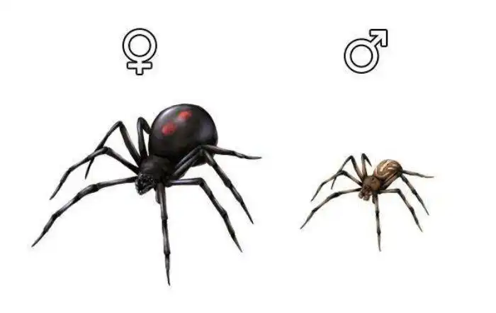 Самцы чёрных вдов вообще крошечные и слабые. Служат только для продолжения рода.
