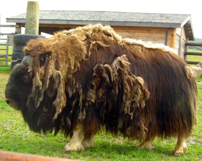 Шерсть овцебыков практически невозможно состричь насильно, остаётся лишь дожидаться линьки и собирать разбросанные по округе колтуны.