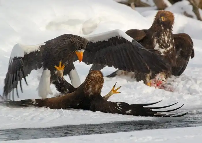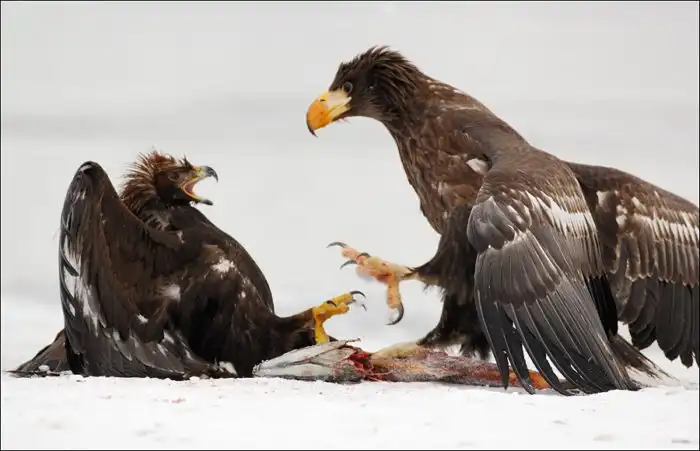 Белохвостый орлан с сожалением понял, что белоплечий собрат будет терроризировать его ещё полвека.