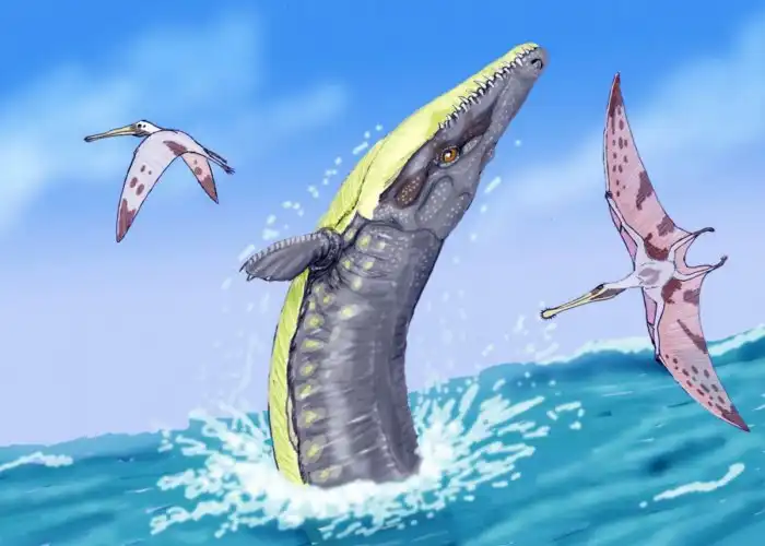 Род дакозавров ушёл в океаны прям насовсем более 100 миллионов лет назад. Это были единственные родичи современных крокодилов, что не вылезали на сушу ни под каким предлогом. Их лапки превратились в ласты, а хвост — в мощный плавник.
