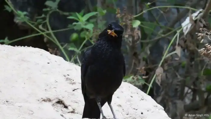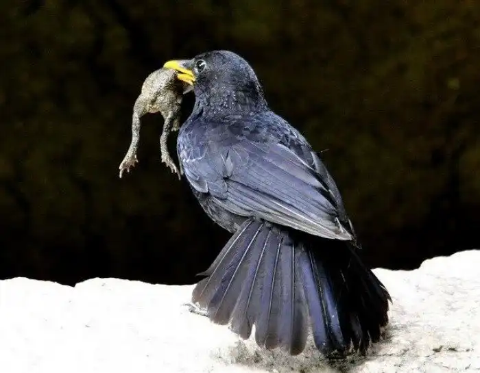 В зависимости от ареала есть два подвида лиловых дроздов: у одного клюв желтый, у другого черный.