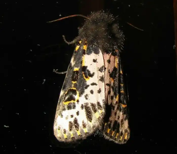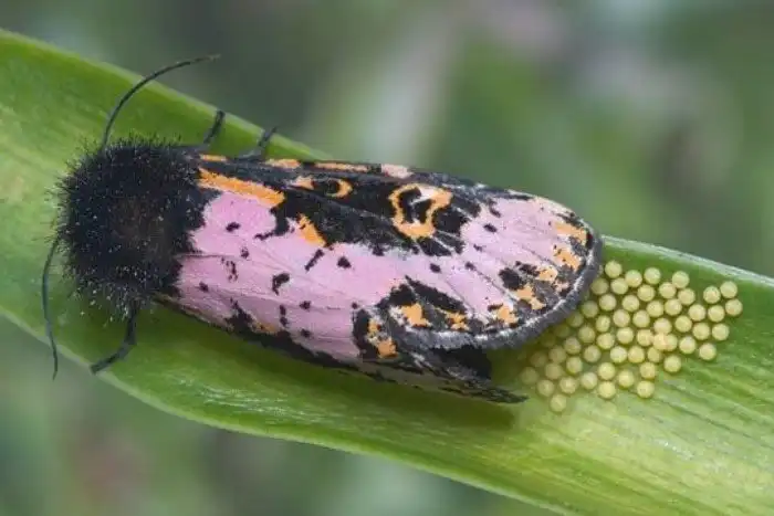 Роковая соблазнительница пусть и не отличается размерами (размах крыльев не больше 4,5 сантиметров), зато щеголяет в вычурном брендовом шмоте чёрно-розовых цветов. Яркие крылья в сочетании с экстравагантной причёской привлекают внимание всех эмобоев округи. Причесон этот, кстати, располагается у моли не на голове, а на груди. А что, не только ж мужикам с волосатой грудью щеголять!