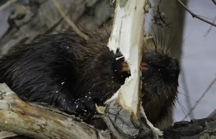 Выросты на губах смыкаются за выступающими вперед мощными резцами, что дает возможность грызть под водой.