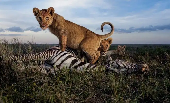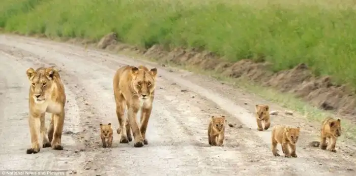 Львята едёт в последнюю очередь. Таким образом самые слабые члены прайда остаются самыми голодными.