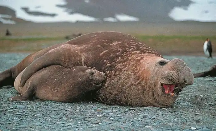 Нет, это не мать и детёныш, это самец и самка морских слонов. Да, настолько они друг от друга отличаются!