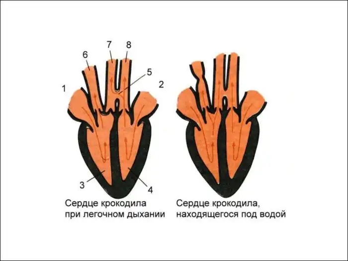 В отличие от нас и птичек, у крокодила в сердце есть дырочка между камерами. Это позволило снизить скорость метаболизма во имя экономии энергии. Зато когда перегородки закрываются, крокодилы чувствуют себя как никогда бодро.