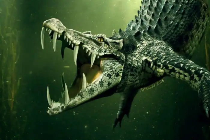 Зубов, правда, у капрозуха было не много больше, чем у алкаша дяди Валеры из соседнего подъезда. Но брал крокодил не количеством, а качеством. Наш длинноногий друг отрастил здоровенные клыки, брутально выпирающие из пасти, как у кабана. Ученые за это и дали ему имя — «крокодил-вепрь».