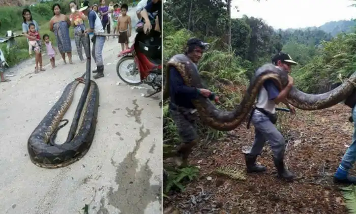 Даже если ты дорос до гигантских размеров, далеко не факт, что тебя не съедят. Вот, например, голодные жители Борнео решили приготовить на ужин этого огромного питона.