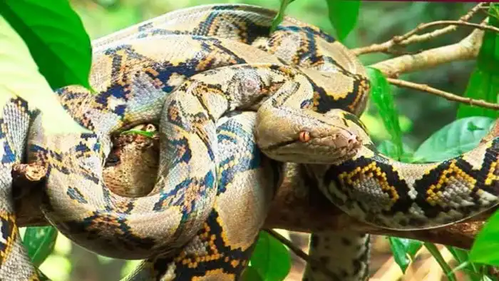 Рептилии эпических размеров кончают гоняться за мелюзгой и принимаются за серьёзную добычу. Копытные, крупные крокодилы и даже люди — для змеи это лишь ресурс, которые делает её ЕЩЁ БОЛЬШЕ. Да-да, человека питон тоже может заглотить, особенно, если этот человек небольшого размера.