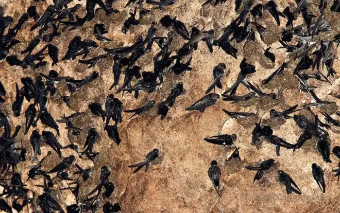 Несмотря на страсть к полёту, саланганы прямо-таки на редкость территориальны. Лишь 2 вида из 35 мигрируют — остальные птицы живут гигантскими колониями в пещерах, вылетая за провиантом лишь под ночь. Причём некоторые виды так приспособились к полуночному образу жизни, что научились пользоваться эхолокацией, прямо как летучие мыши! Эх, конвергентная эволюция, что ж ты делаешь, чертовка!