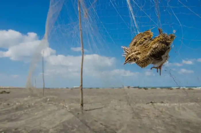 Перепёлки летают достаточно низко по сравнению с другими перелётными птицами, и этим часто пользуются люди, расставляя сети на пути их миграции.