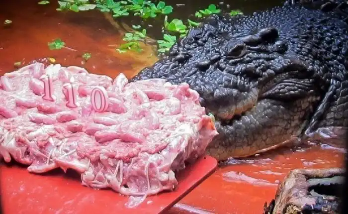Это — Кассиус Клей, самый старый крокодил из ныне живущих и один из самых больших по совместительству. В 2011 году ему исполнилось 110 лет. Животину поздравили 20 килограммовым тортом из цыплят.