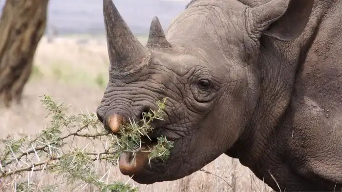 Дайте носорогу источник воды в радиусе 10 километров от места обитания, да плотные заросли кустарника — и он будет доволен. Подойдут даже колючие или едкие растения: сложенные трубочкой губы носорога напоминают чертовски прочный и гибкий хоботок, ими можно срывать вообще всё что угодно.
