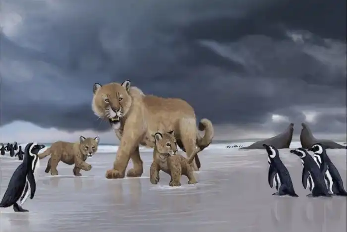 По итогу мега-киски расселились по территории всей Северной и части Южной Америки. А знаете, кто ещё обитает в Южной Америке? Правильно, пингвины. Вряд ли львы охотились на нелетающих птах — переводить энергию на пару кило водоплавающей курятины бессмысленно. Но соседствовать им ничего не мешало.